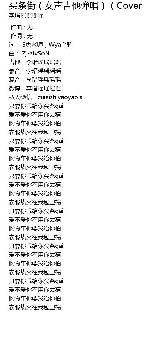 | Song | 买条街(女声吉他弹唱)(Cover $唐老师) |