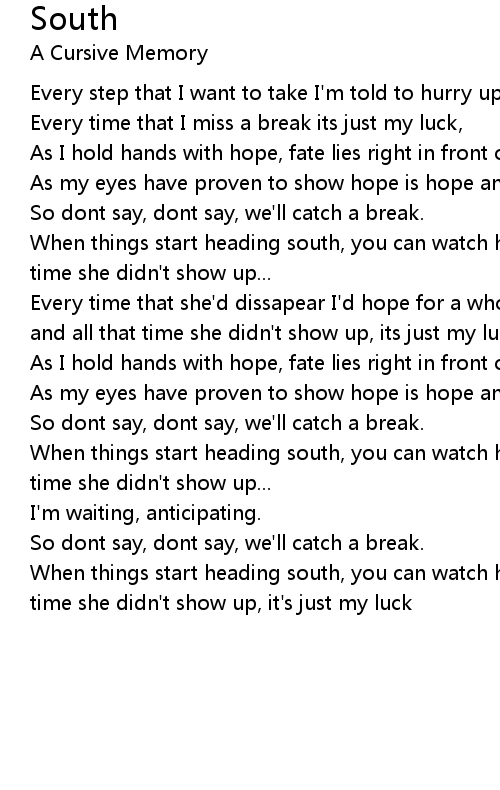 When things start heading south, you can watch her tear me down, and all that time she didn't show up, it's just my luck |