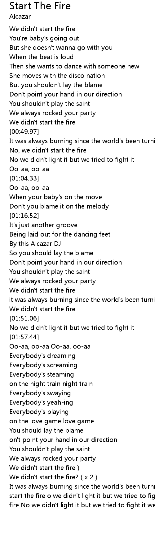 | [00:48.35] | We didn't start the fire |