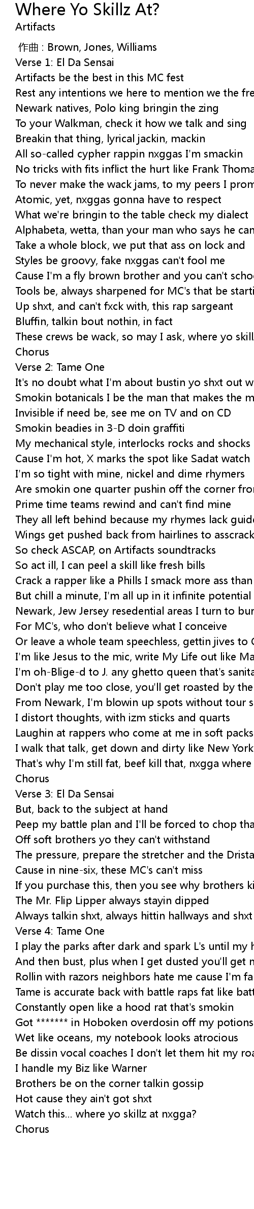 | [01:06.86] | These crews be wack, so may I ask, where yo skillz at? |