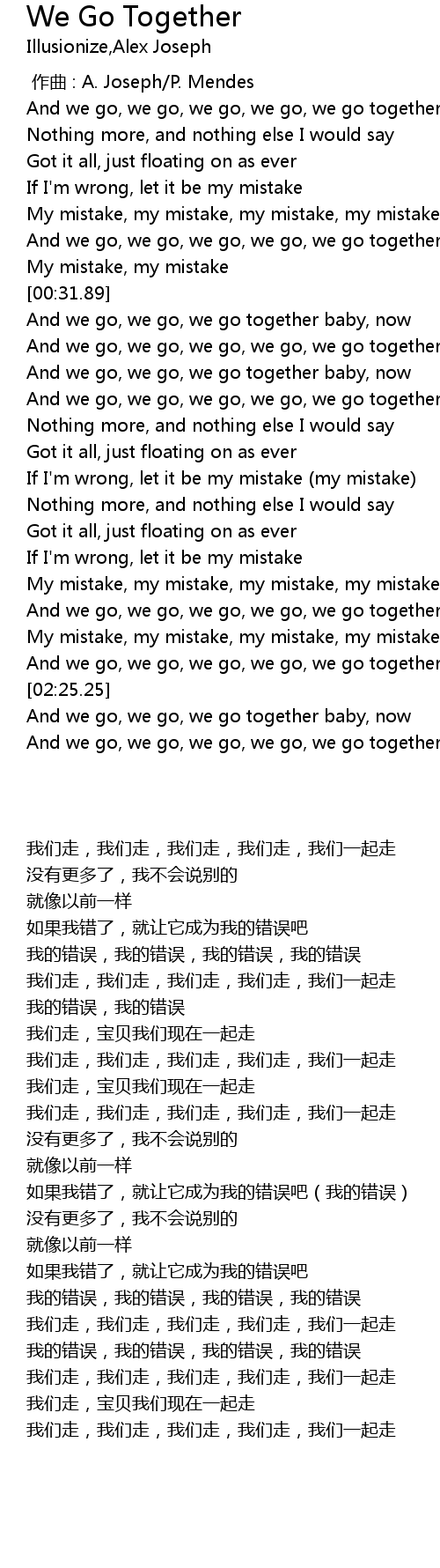 | [01:33.44] | And we go, we go, we go, we go, we go together |