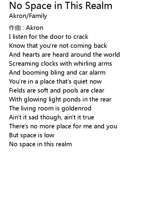 | Song | No Space in This Realm |
