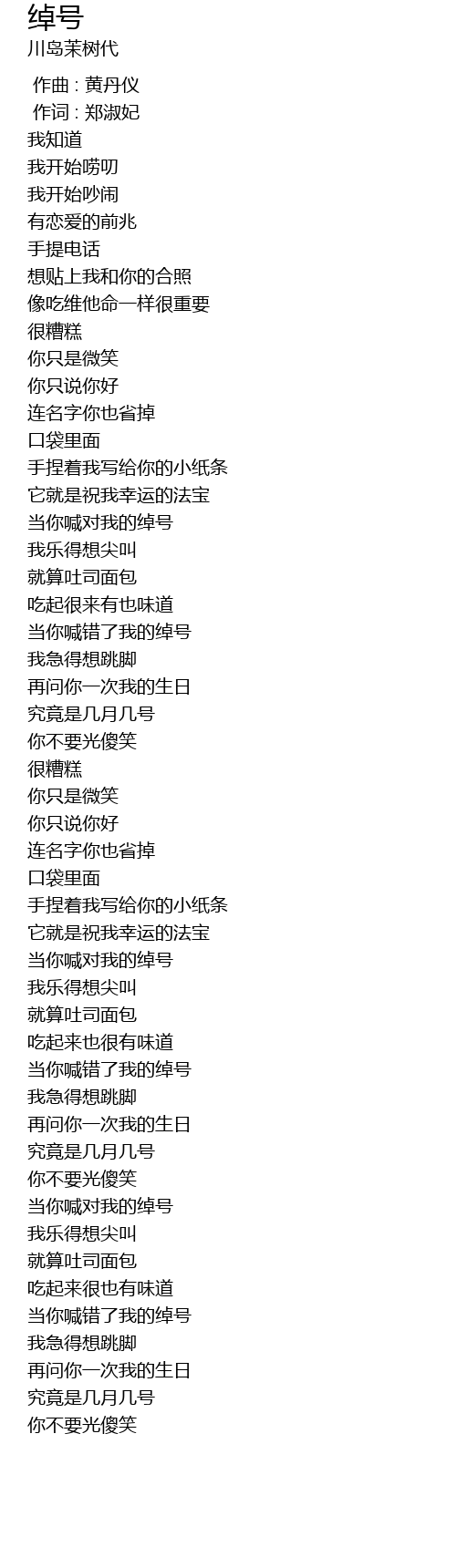 | [01:14.37] | 当你喊对我的绰号 |