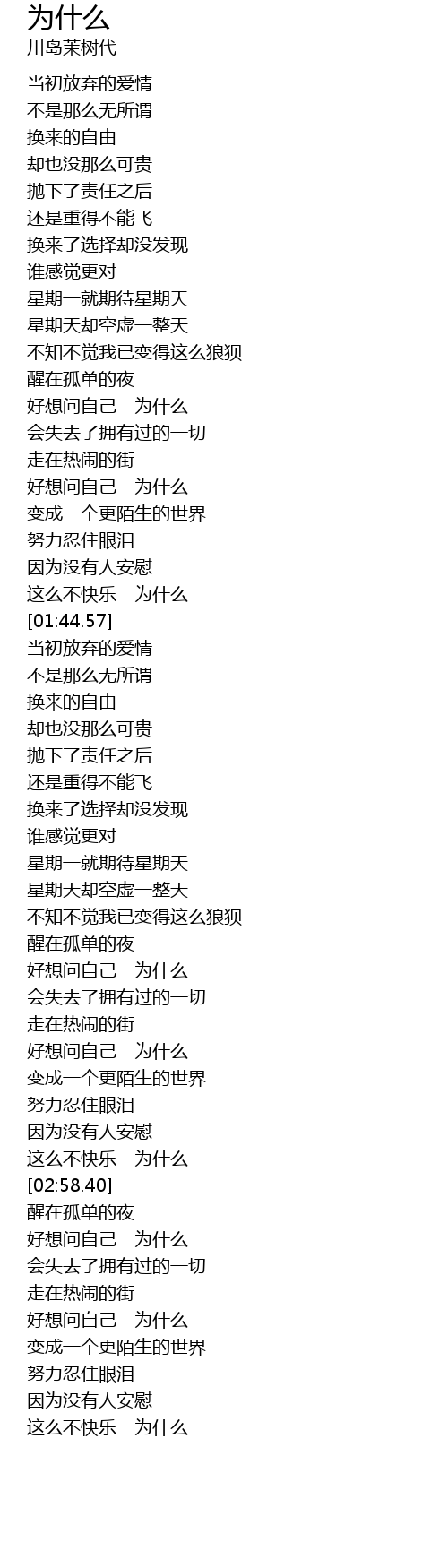 | [02:50.76] | zhè me bù kuài lè wèi shí me |