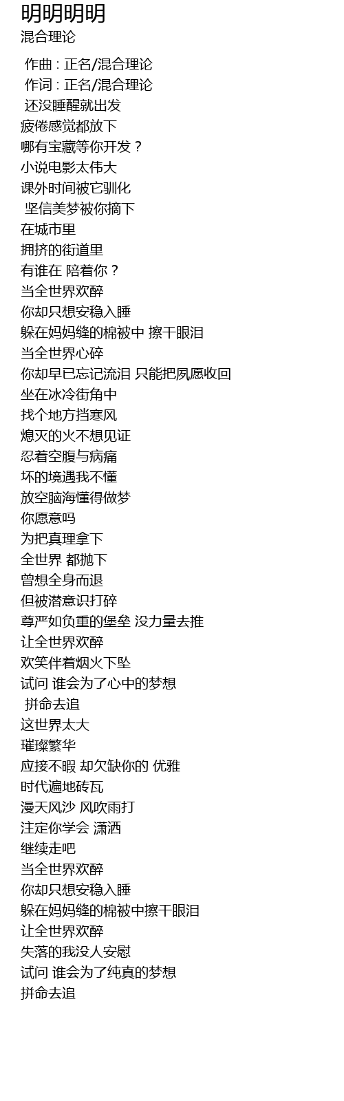| [00:00.000] | 作曲 : 正名/混合理论 |