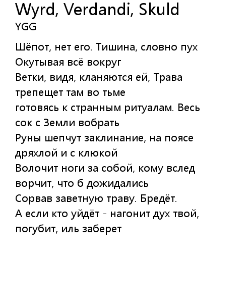 | [04:30.586] | Руны шепчут заклинание, на поясе дряхлой и с клюкой |