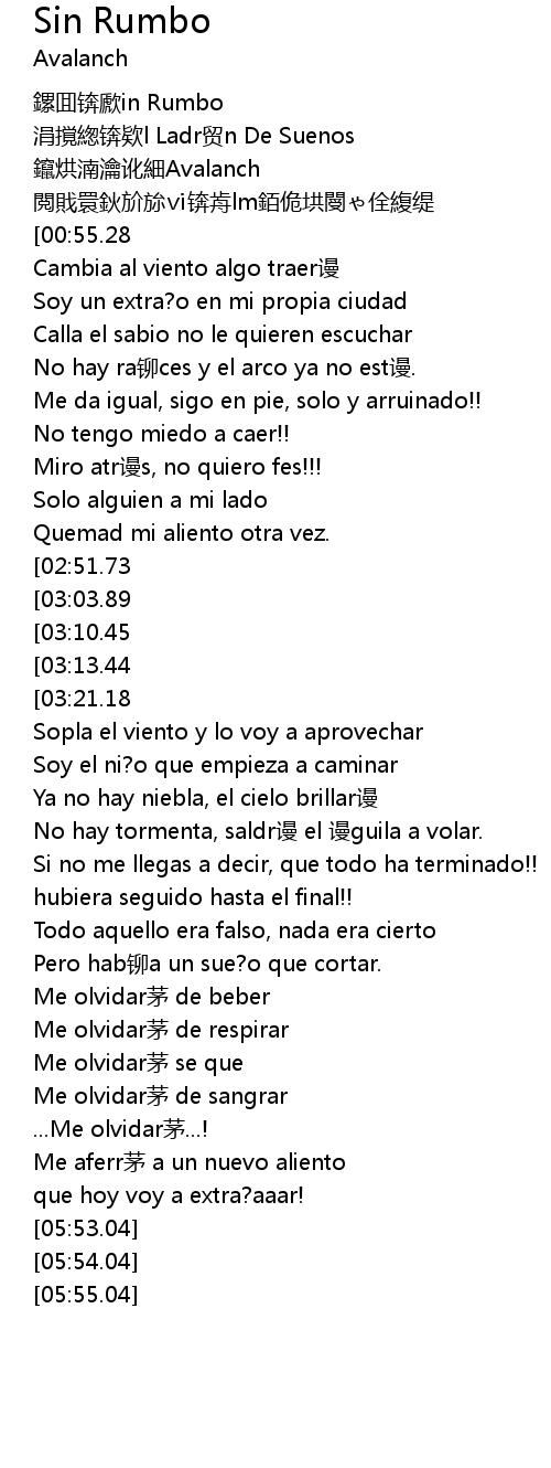 | [01:17.31][02:51.73] | Sin Rumbo (X2) |