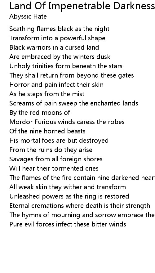 Land Of Impenetrable Darkness Lyrics