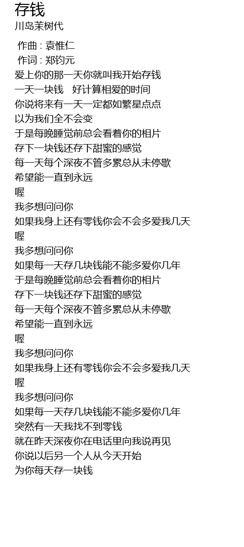 | [01:37.50] | 如果每一天存几块钱能不能多爱你几年 |