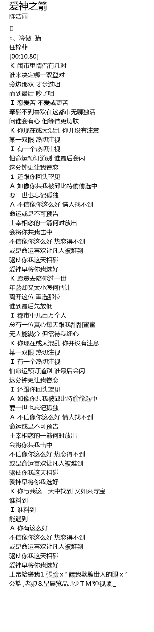 | [02:31.980] | 主宰相恋的一箭何时放出 |