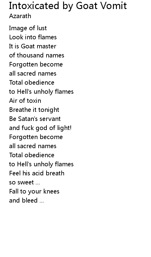 | Song | Intoxicated by Goat Vomit |