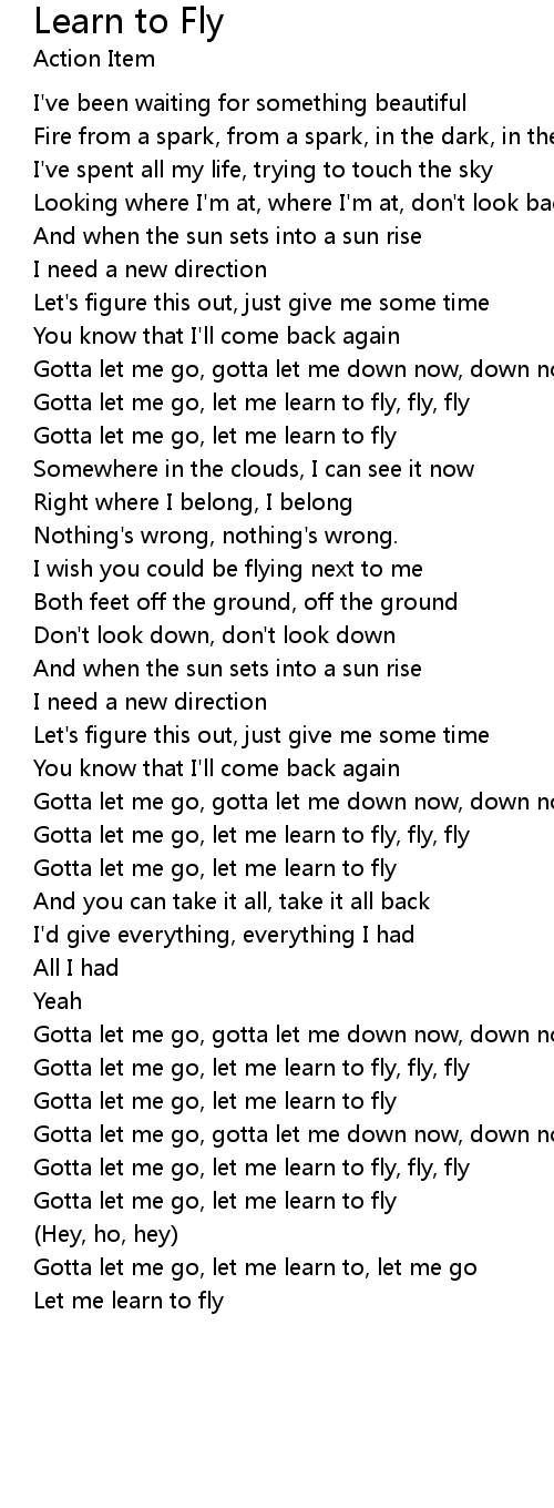 Gotta let me go, let me learn to fly, fly, fly |