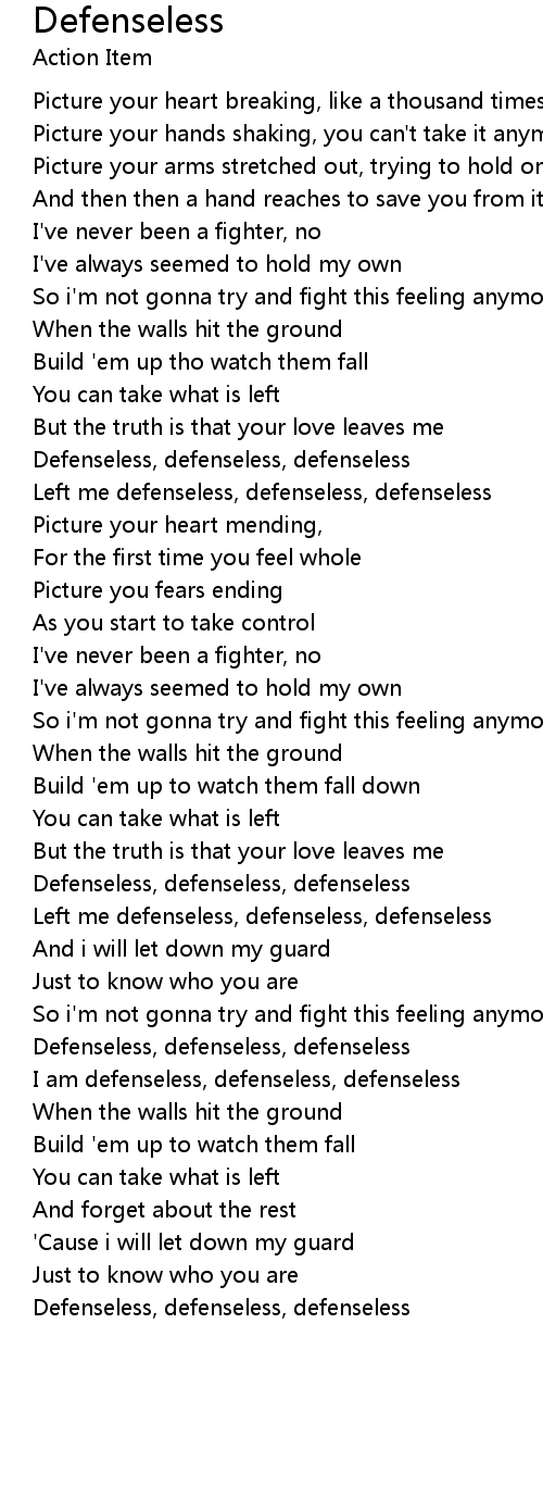 Defenseless, defenseless, defenseless |