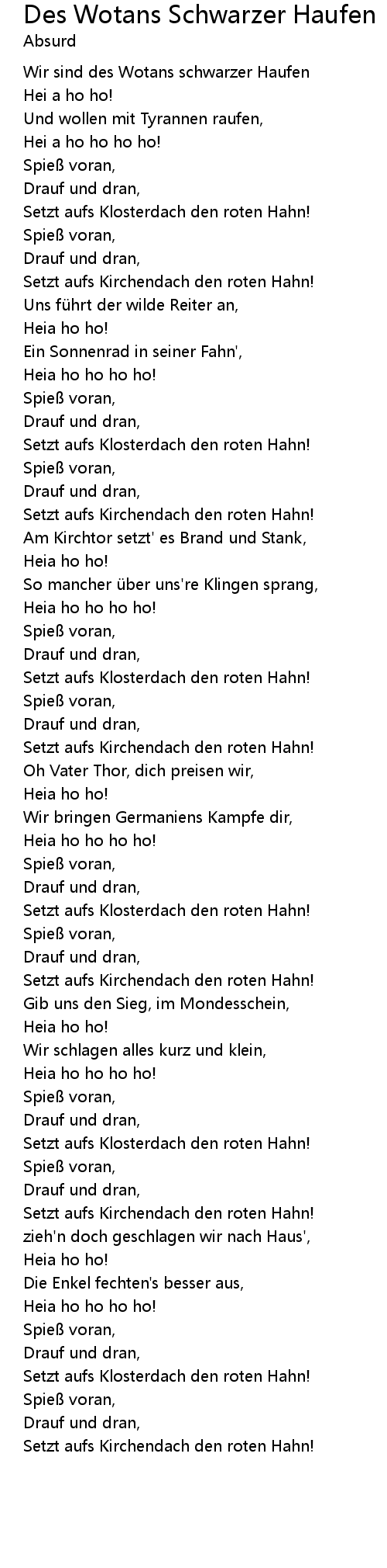 | Wir sind des Wotans schwarzer Haufen | |
