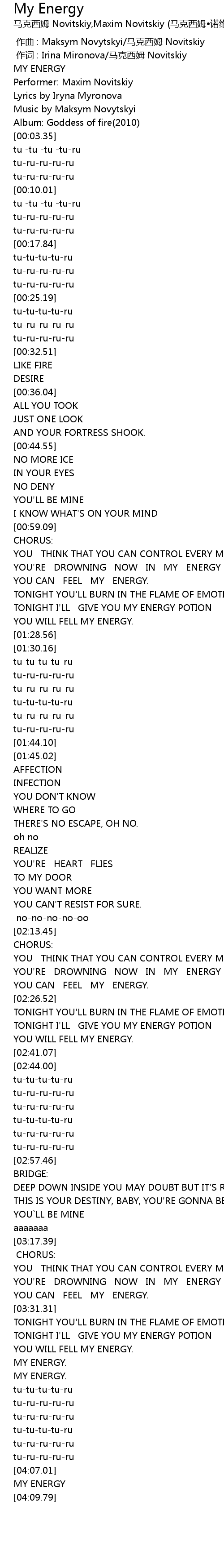 | [03:39.64] | YOU WILL FELL MY ENERGY. |