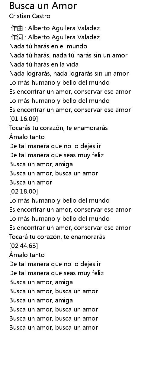 | [00:50.61] | Nada lograrás, nada lograrás sin un amor |