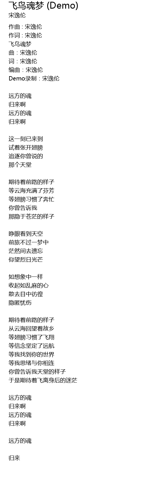 | Song | 飞鸟魂梦 (Demo) |