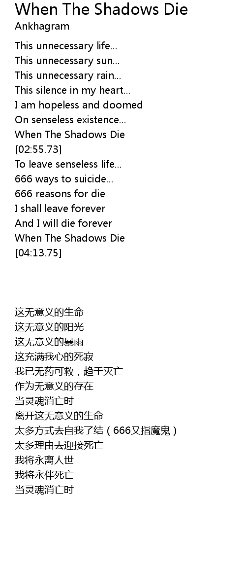 | [02:15.78] | When The Shadows Die |