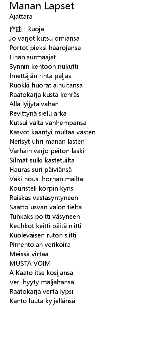 | Neitsyt uhri manan lasten | |