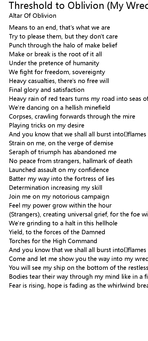 | Song | Threshold to Oblivion (My Wrecked Mind) |