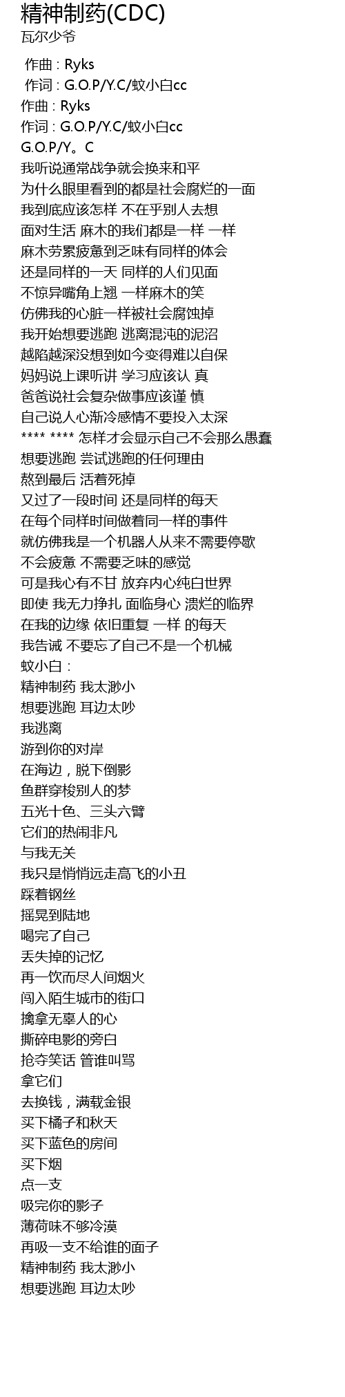 | [00:04.24] | zuo ci : G. O. P Y. C wen xiao bai cc |