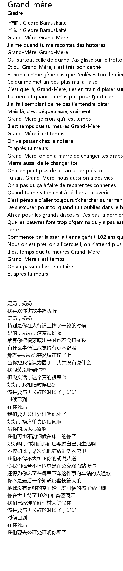 | [00:00.000] | Grand-Mère, Grand-Mère |