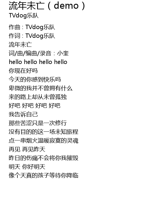 | 作词 : TVdog乐队 | |
