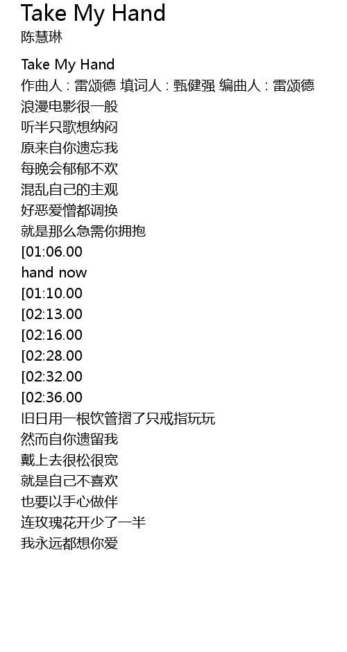 | [00:00.00] | Take My Hand |