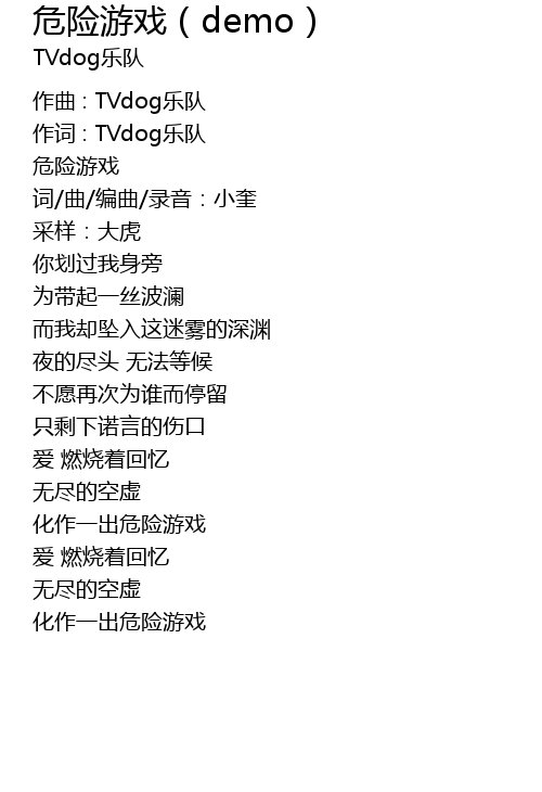 | 作词 : TVdog乐队 | |