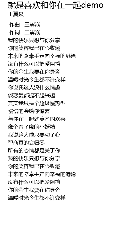 | [00:00.79] | wǒ de kuài lè zhǐ xiǎng yǔ nǐ fēn xiǎng |