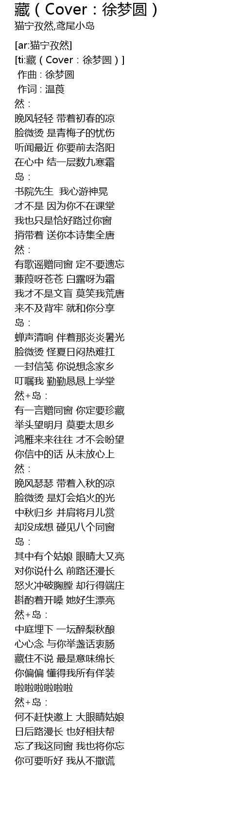 | [00:00.000] | 作曲 : 徐梦圆 |