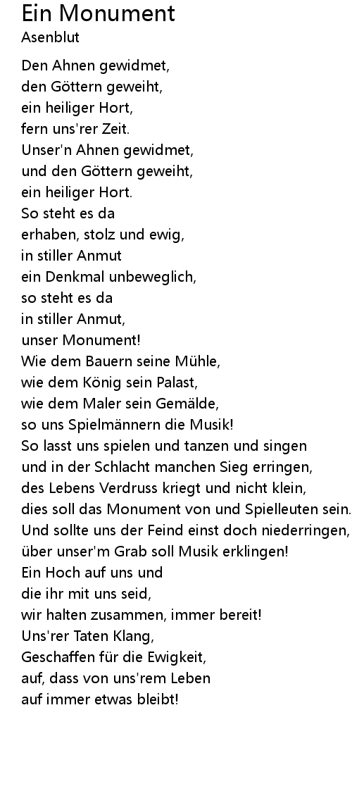 | dies soll das Monument von und Spielleuten sein. | |