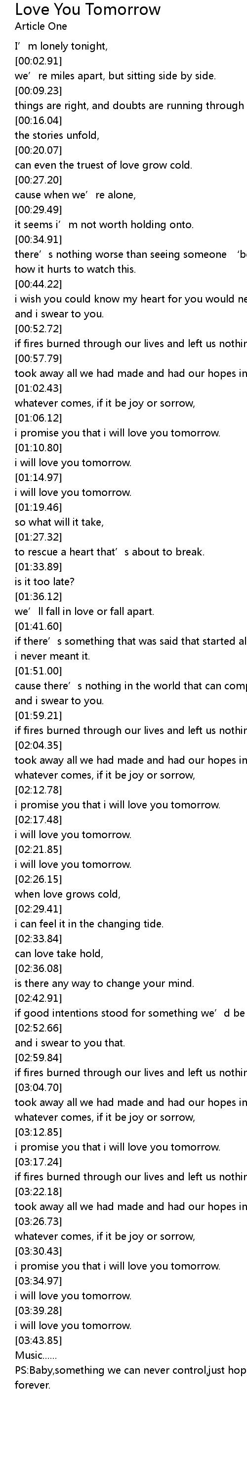 | [03:13.98] | i promise you that i will love you tomorrow. |