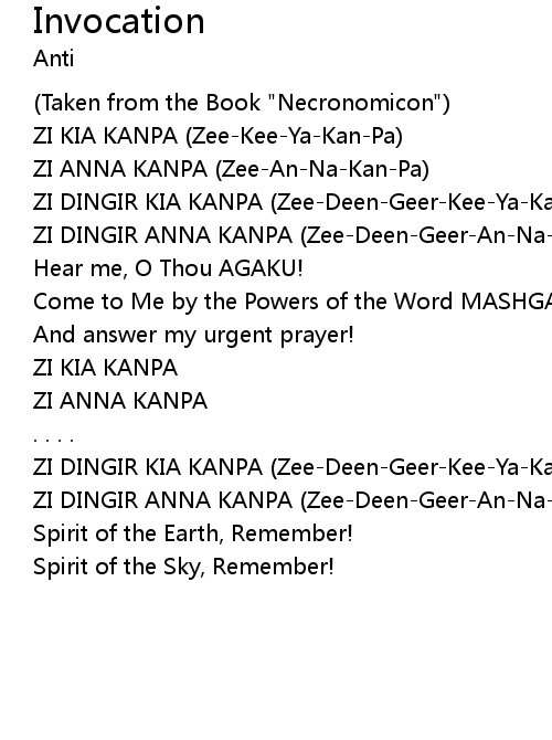 | (Taken from the Book "Necronomicon") | |