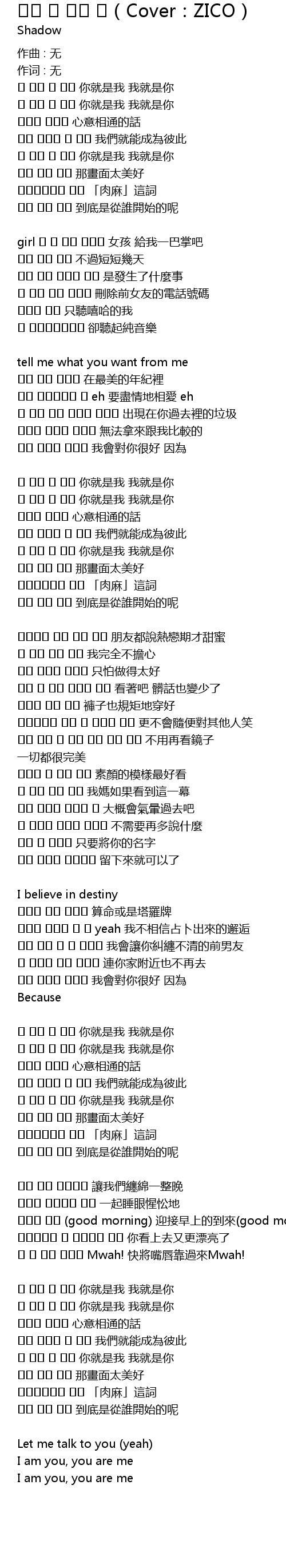 | Song | 너는 나 나는 너(Cover:ZICO) |