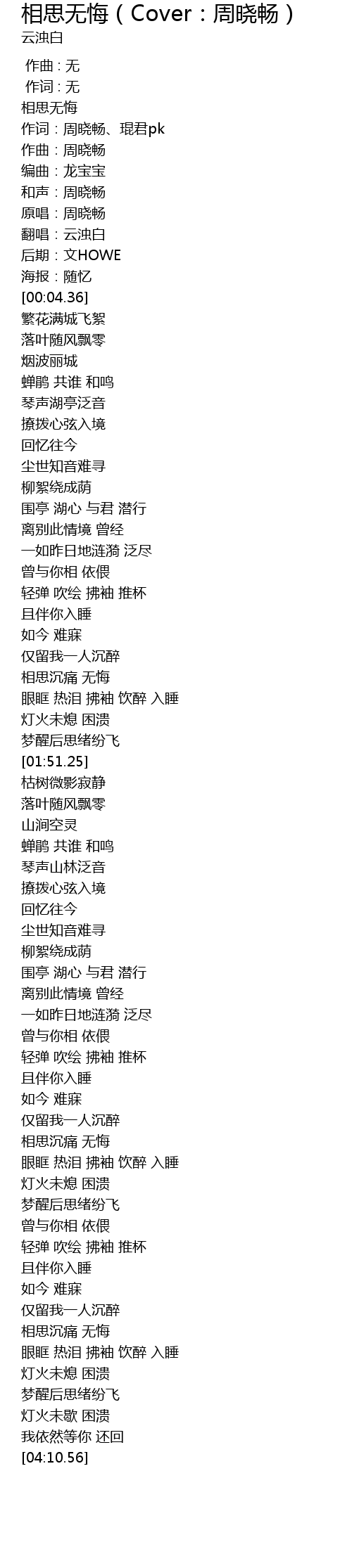 | [03:47.74] | 相思沉痛 无悔 |