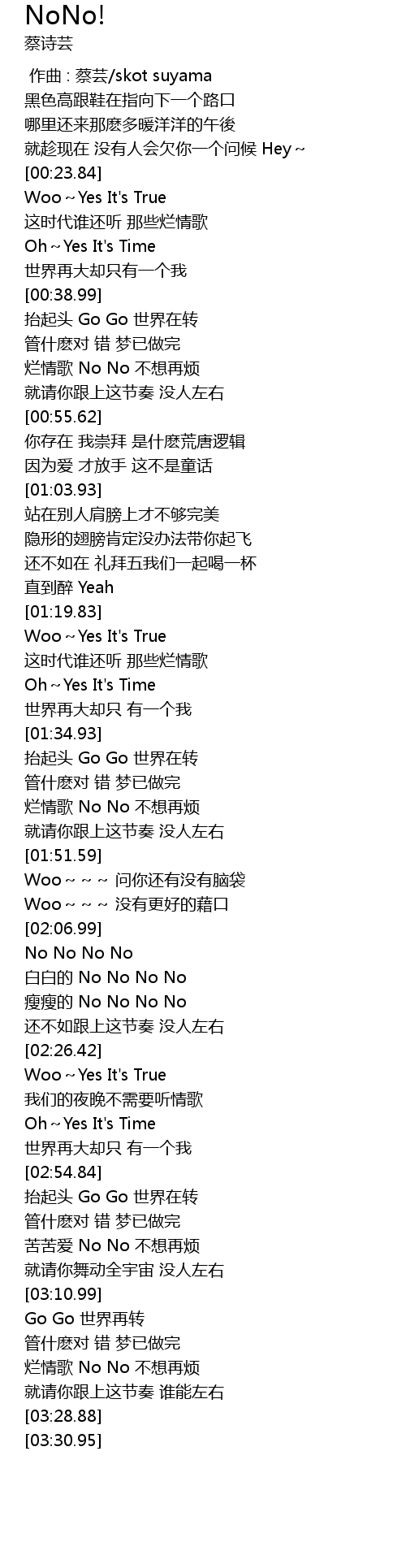 | [02:11.18] | 白白的 No No No No |