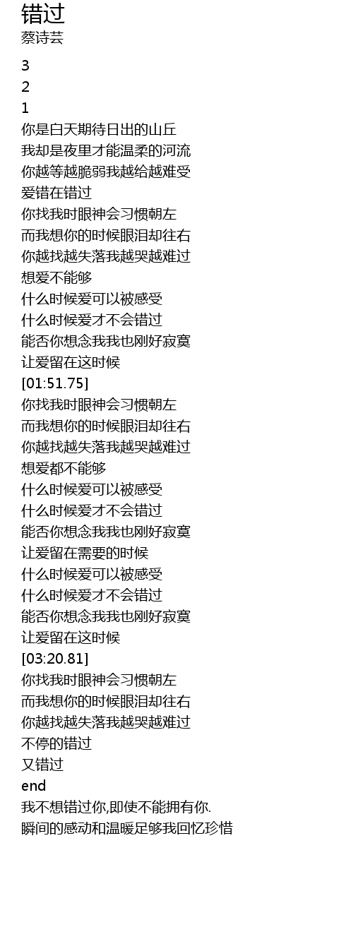 | [03:52.64] | 又错过 |