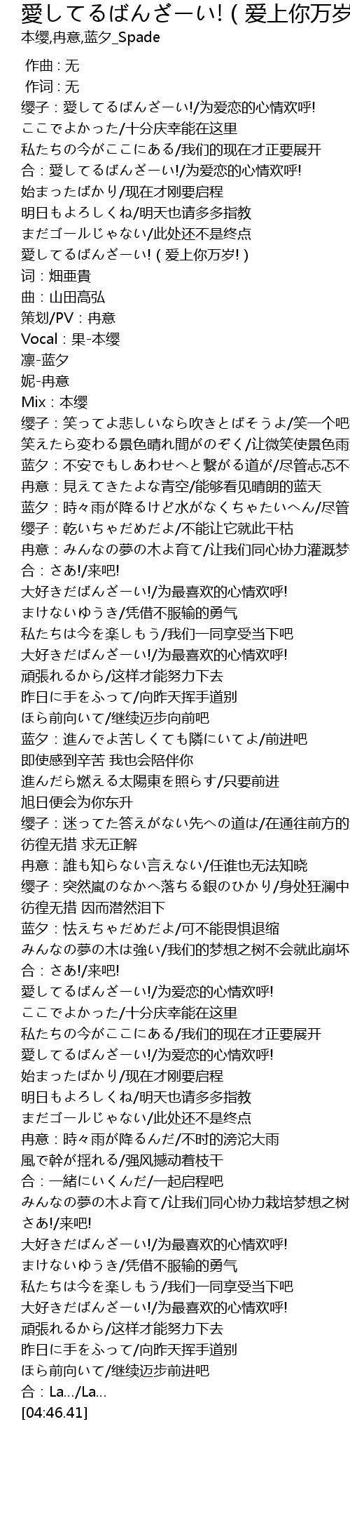 | [02:35.44] | 愛してるばんざーい!/为爱恋的心情欢呼! |