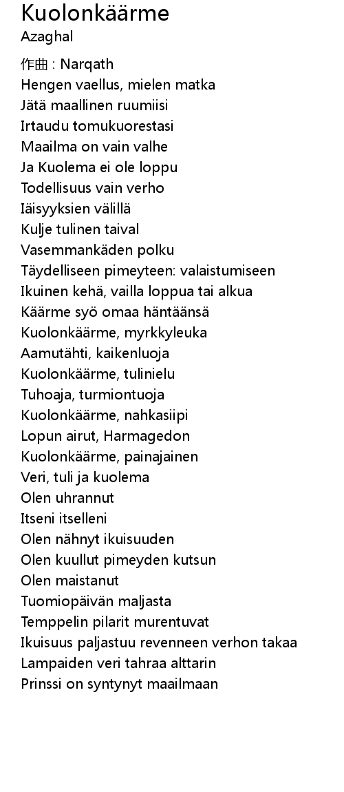 | Kuolonk rme, tulinielu | |