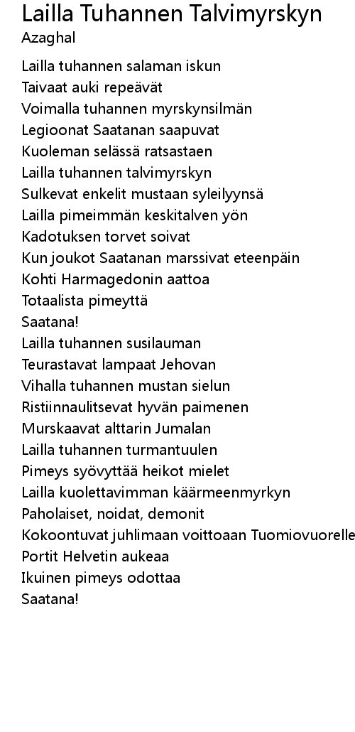 | Song | Lailla Tuhannen Talvimyrskyn |