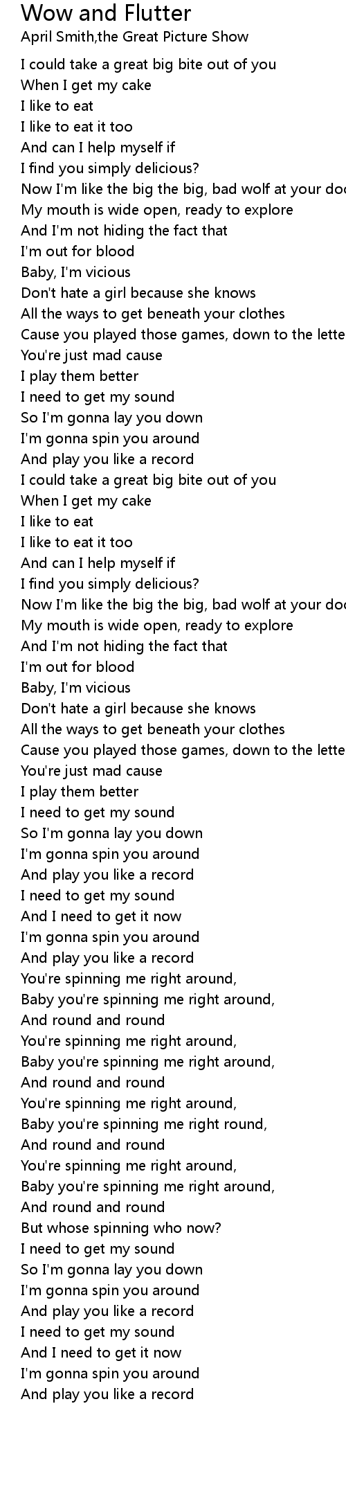 Baby you're spinning me right round, |
