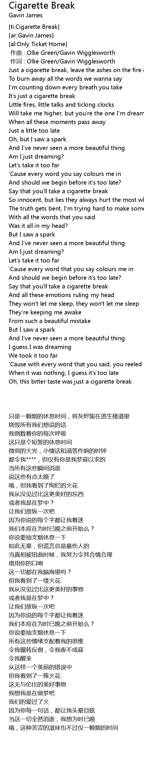 | [ti:Cigarette Break] | |