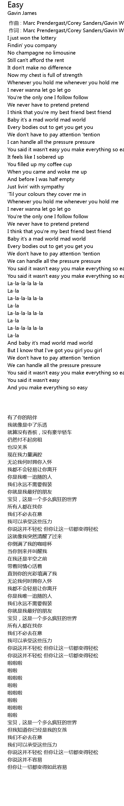 | [00:01.000] | 作词 : Marc Prendergast/Corey Sanders/Gavin Wigglesworth |