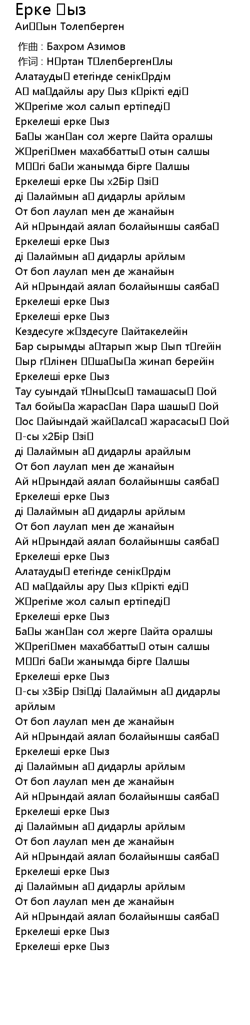 作词 : Нұртан Төлепбергенұлы |