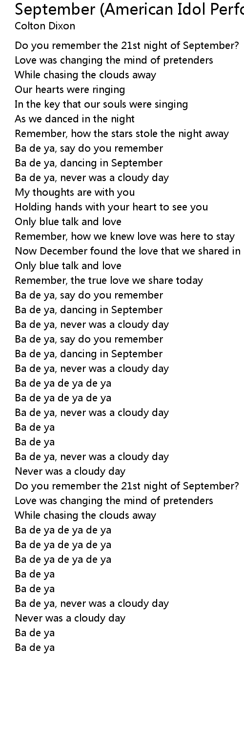 Ba de ya, dancing in September |