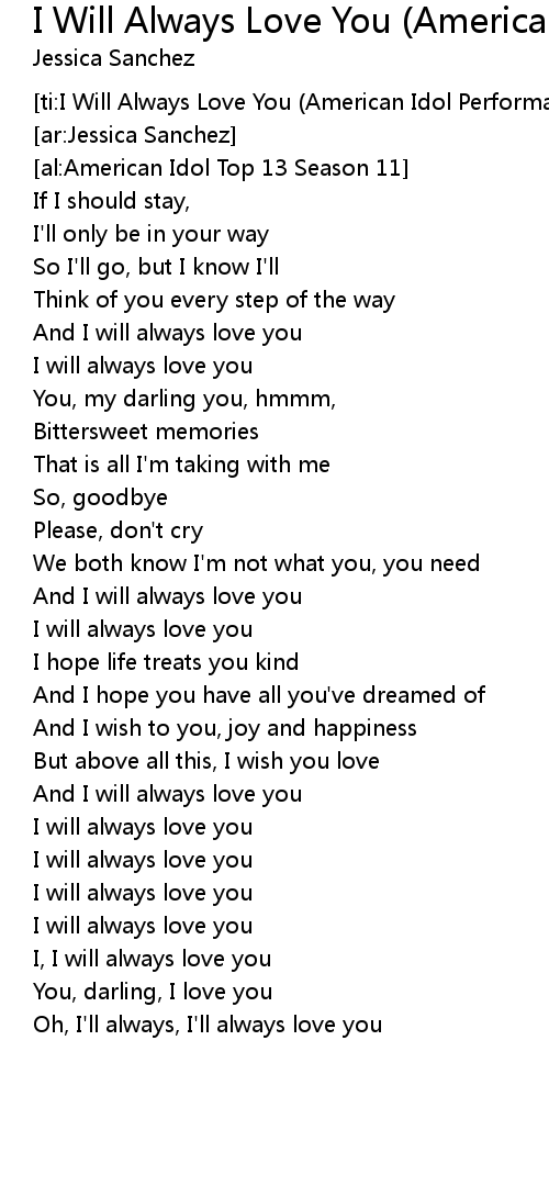 [ti:I Will Always Love You (American Idol Performance)] |
