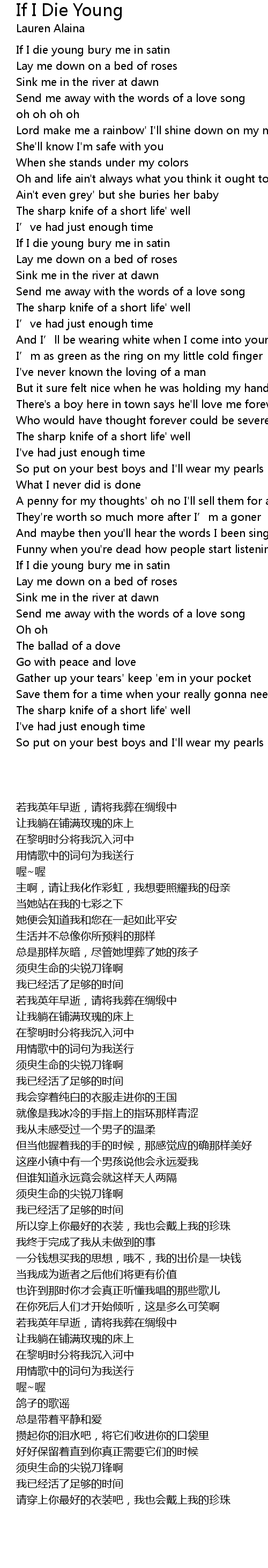 | [00:49.919] | If I die young bury me in satin |