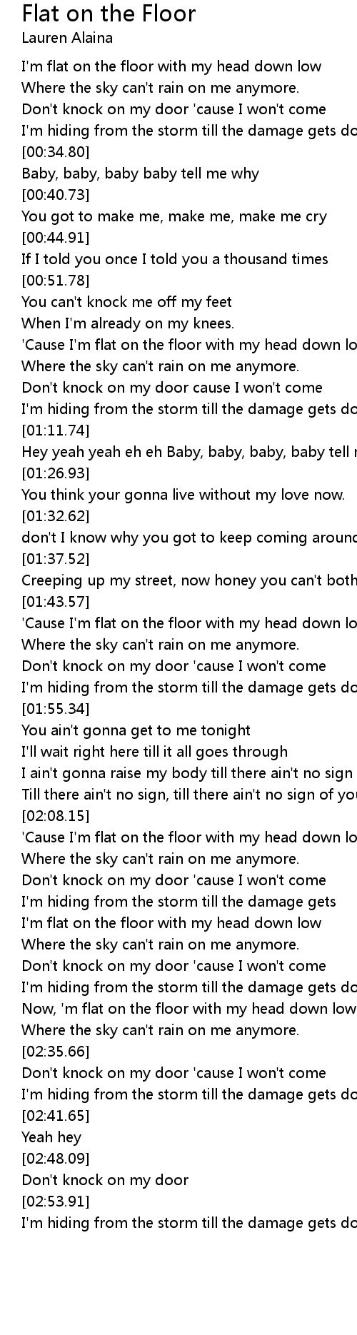'Cause I'm flat on the floor with my head down low |