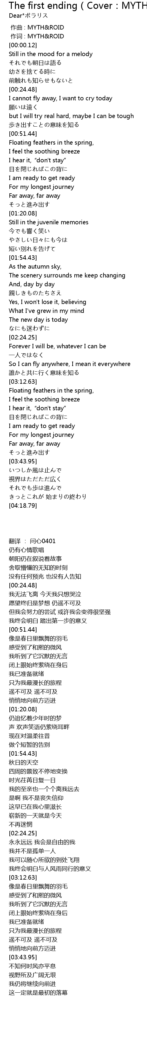 | Song | The first ending(Cover:MYTH & ROID) |